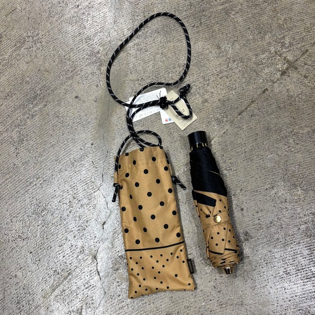 軽く小ぶりの傘と 同じ柄で作られた収納袋には斜めがけできるストラップが付きます。