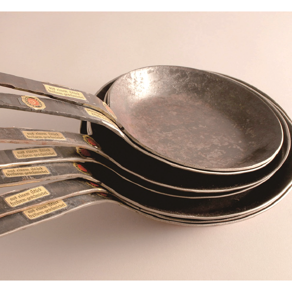 鉄フライパンは強度も高く堅剛で空焼きしても劣化がありません。使えば使うほどなじみ、よりよく美味しく調理でき風合いも増します。ドイツはもとよりヨーロッパで,このマイスターが作るクラシックなフライパンが見直され生産が追いつかない状況です。