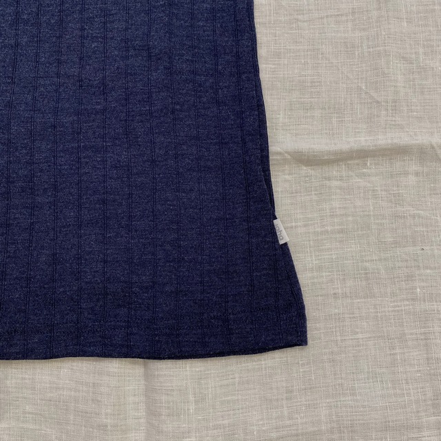 メリノウールにシルクを混紡した滑らかな肌触りのリブ織り素材は、メリノウール100%に比べやや薄く光沢がありますが劣らない暖かさです。