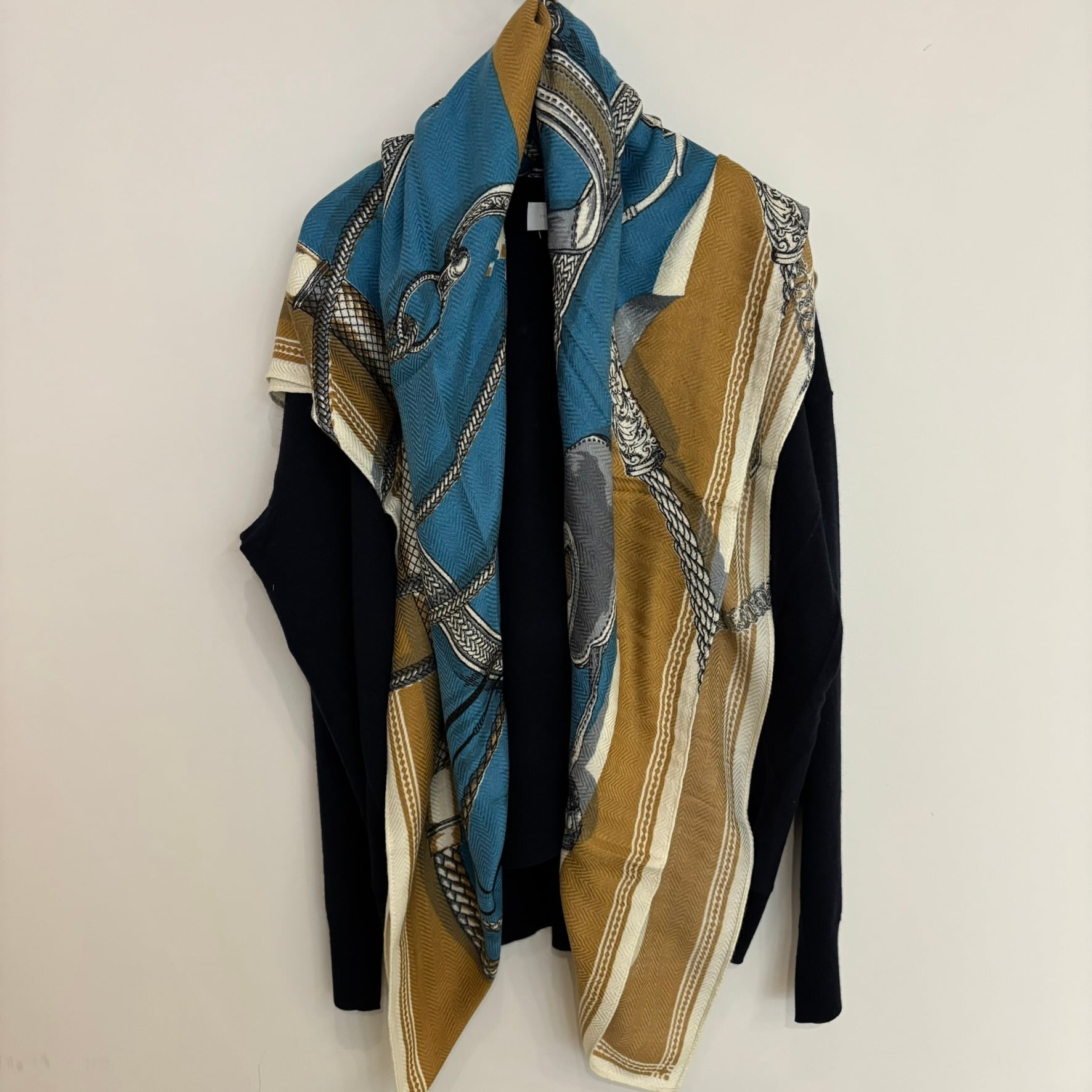 manipuri:4 ウール/シルク ストール (ジョッキー) ヘリンボーン織 120cm × 120cm