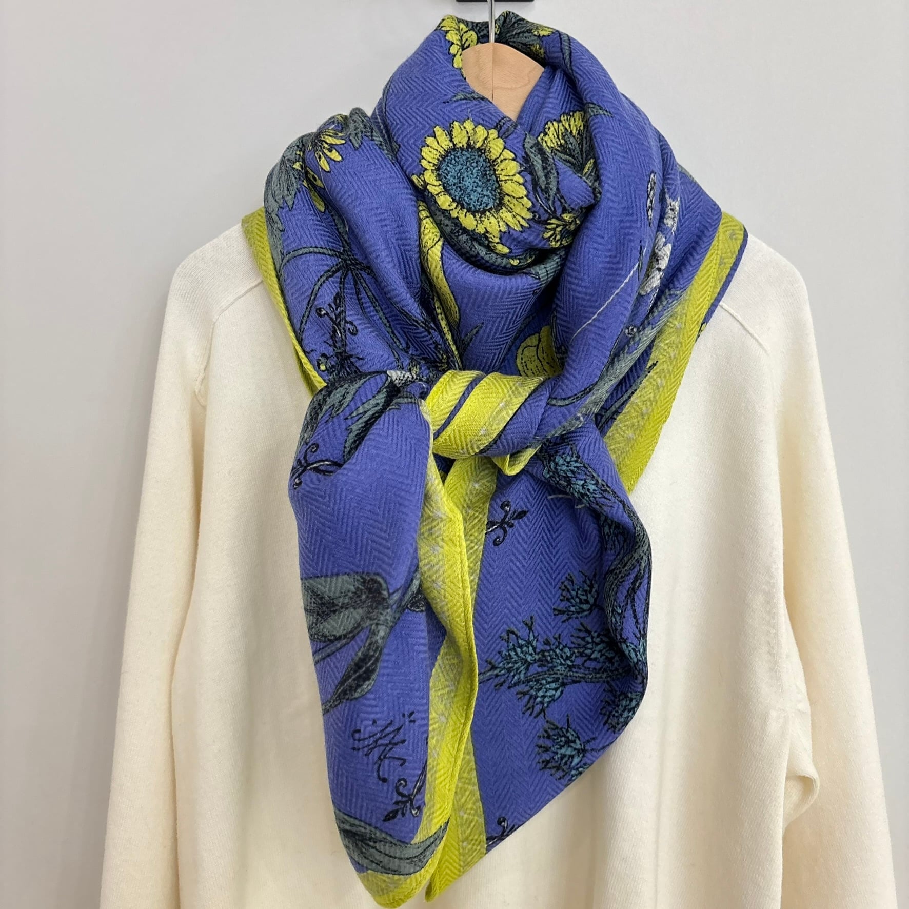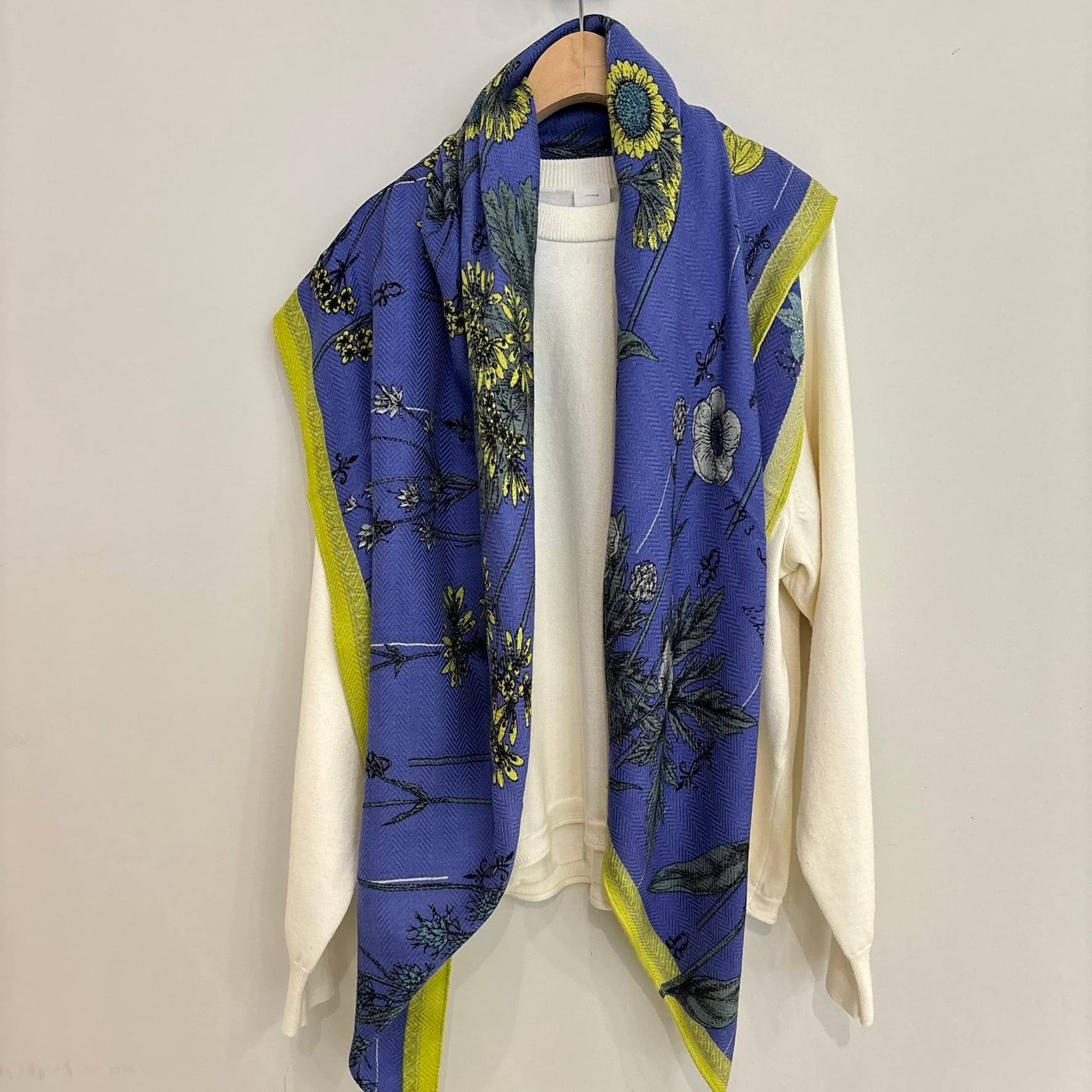 スカーフ感覚でさらりと巻ける正方形で、シルク混素材ならではの優しい肌触りです。