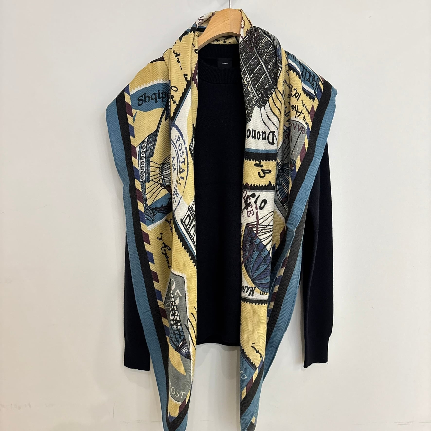 スカーフ感覚でさらりと巻ける正方形で、シルク混素材ならではの優しい肌触りです。