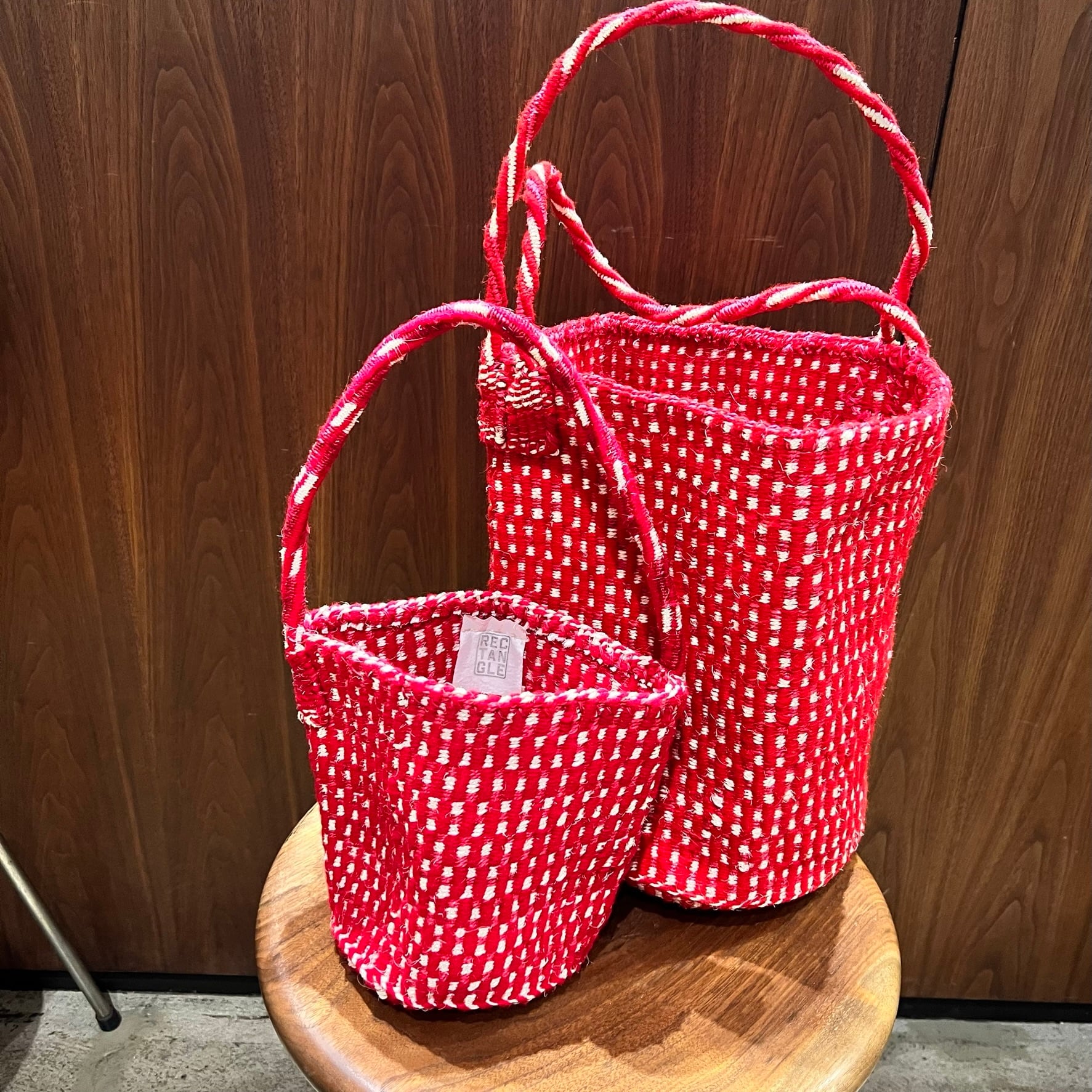RECTANGLE : ギンガムサイザルバスケット ラージショルダー